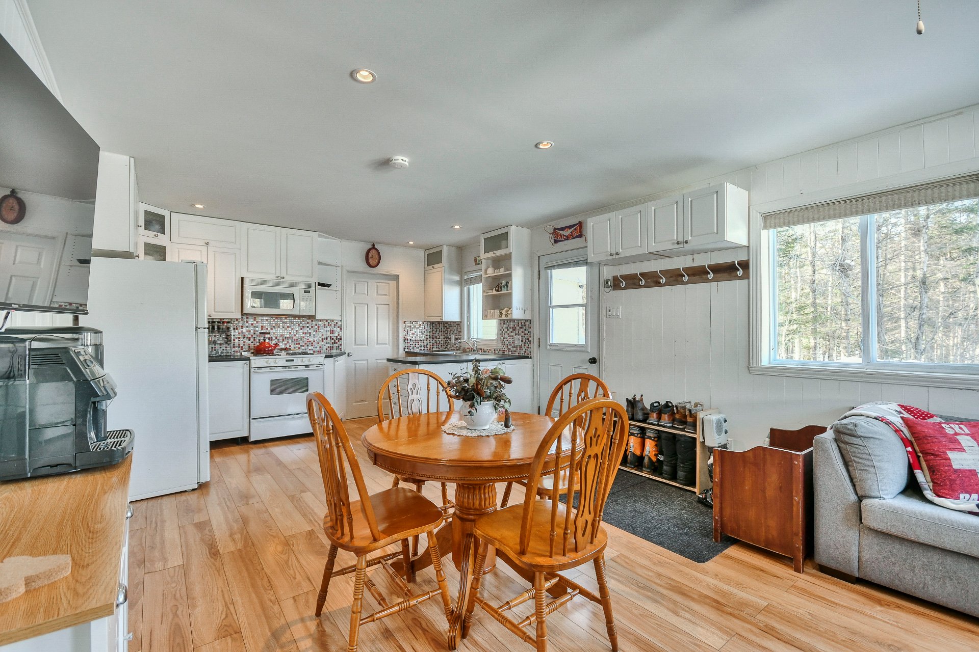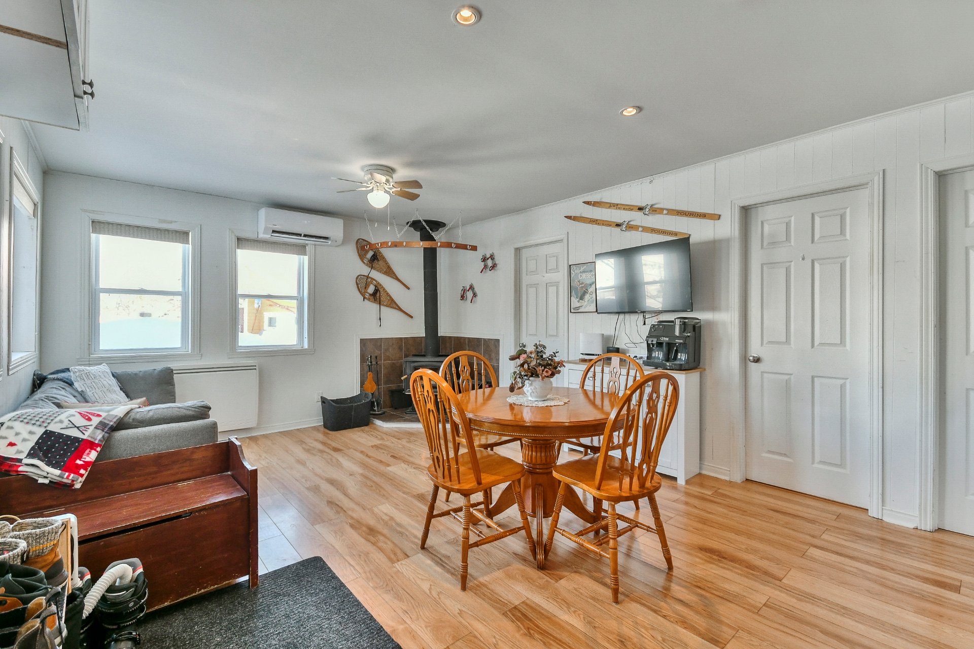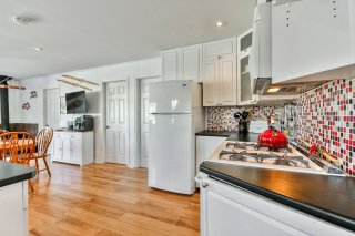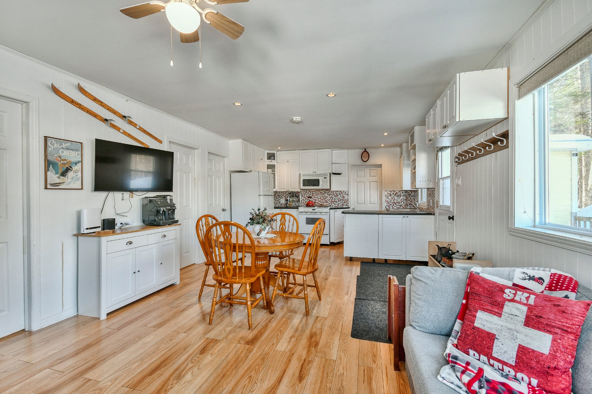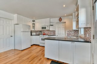Inclus : Fixtures, stores, hotte micro-ondes, électroménagers, lits, divan, tables à diner et ses 4 chaises.